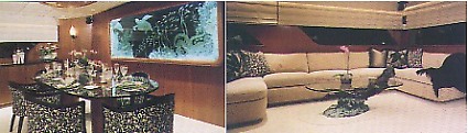 This impeccable 110' Broward recieved a million dollar refit in 1996. Kalee's redesigned and refurbished interior features rich teak woods complimented by black granite surfaces and lavish European fabrics. Her formal dining salon provides a coozy atmosphere for larger parties. Accomodates 8 guests in 4 staterooms, each with private baths laid in Italian marble and white-washed oak. Her master suite features a king-sized bed, jacuzzi and true his and her bathrooms. The VIP suite on the main deck offers a queen-sized bed, while addtional staterooms have one queen and a set of twin beds, all with ensuite baths. Twin Dertoit Diesel 12V71TIs provide a comfortable cruising speed of 14.5 knots with a maximum speed of 17 knots. Call for complete brochureon this unique, fun filled vacation package on the water! | |||