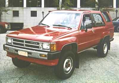 | 1989 Toyota 4-Runner: 2 door, 4 cyl, Manual transmission, Removable hardtop, AM/FM Cassette, towing hitch/receiver, new timing chain & tires (4 months), Red exterior, Gray interior, 139,000 miles, Good condition! | ||