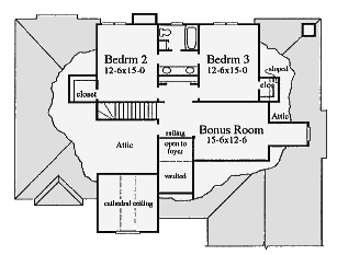 Stucco and stone adorn this European one and a half story home. The main floor features a Master Suite, a Library