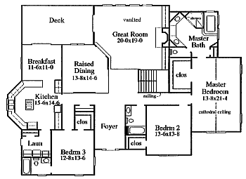 The European styling of this ranch home brings out its best. The raised Dining Room
