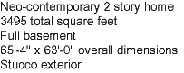 A mixture of european and bold lines set off this Neo-contemporary 2 story home. From the arching window of the Foyer to the skylit vault of the Great Room you fall in love with this one. 4 bedrooms, 3 1/2 baths means plenty of space to relax and enjoy life. The stucco exterior with column highlights is stunning from every angle!